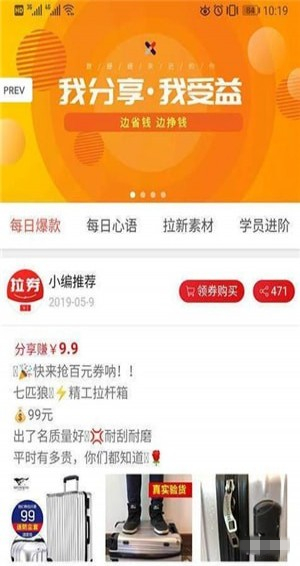 拉券app是一款方便网购达人购物生活的省钱工具,涵盖服装、百货、美妆、鞋包、生鲜等应有尽有,专注于高性价比商品的导购平台,海量大额优惠券每日更新,让您会购物,惠生活...,用户在拉券app里每天都能领取超多优惠券,让你用超低价买到自己心仪的商品,商品品类很丰富,可满足每一位用户的购物需求,还有超多优质特惠商品提供不断,任你选购,移动购物新模式,喜欢买买买的小伙伴就赶紧来使用拉券app吧