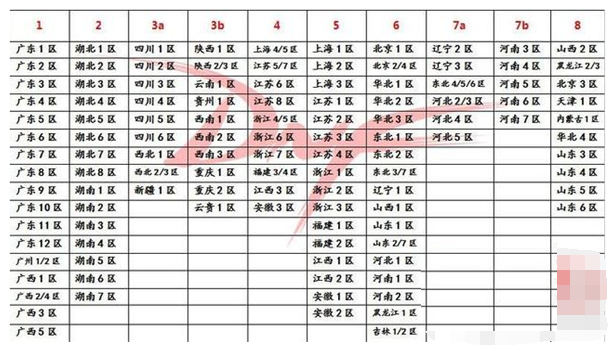 北京1区 北京2/4区 华北1区 华北2区 华北3区 东北1区 东北2区 东北3/7区 辽宁1区 西北1区