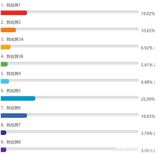 很有意思的是,最出名的跨六竟然不是第一大区,跨五以巨大的优势拔得头筹,其实这也是很正常的,跨五因为没有大主播所以一直默默无闻,实际上根据跨区列表,跨五是由上海江苏浙江安徽江西五大区人数最多的三个区组成的,人口基数非常恐怖,另外官方曾经出了一个跨区卢克通关次数排行,跨五也是稳稳的第一。