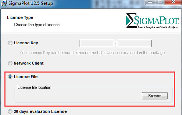 4、选择“License File”,点击“Browse”。