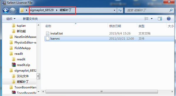 5、接着我们就要找到解压文件中的破解补丁文件下的“lservrc”文件,点击“打开”即可。