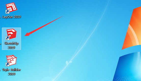 找到桌面的Sketchup2019图标,点击打开。 如图一十二。