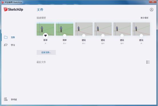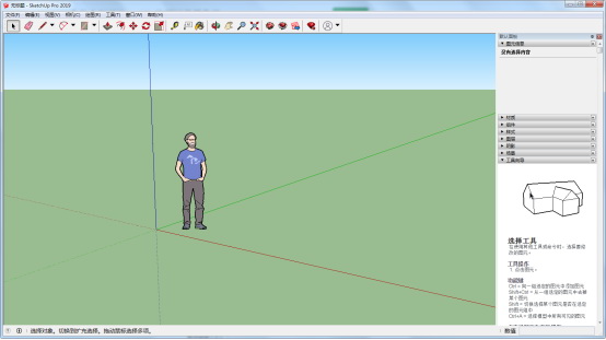 Sketchup2019的欢迎界面,随便新建一个模型。 如图一十三。