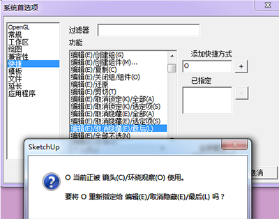 打开系统首选项窗口,点击“快捷”在右侧,我们可以对软件中一些功能进行快捷键的设置,比如在功能下,选择“编辑取消隐藏最后”,再在天界快捷方式中给其任何一个快捷键”O”,此时出现?的窗口,这是因为,设置的功能快捷键与软件系统默认的快捷键一样了,一般遇到这种情况,我们尽可能保持默认快捷键的形式,对我们设置的快捷键进行再次设置即可;