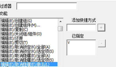 我们再次设置其快捷键为V,没有出现?的窗口,说明,我们设置的快捷键没有与默认的快捷键重复,设置快捷键成功,如果我们不想要这个快捷键了,直接点击右侧的减号即可将其删除;