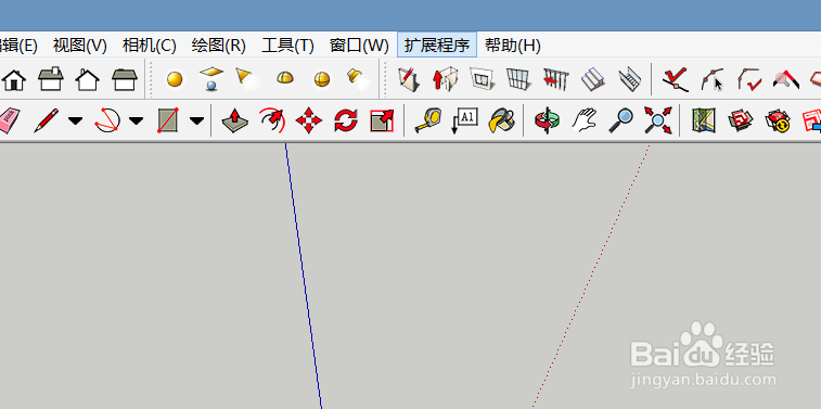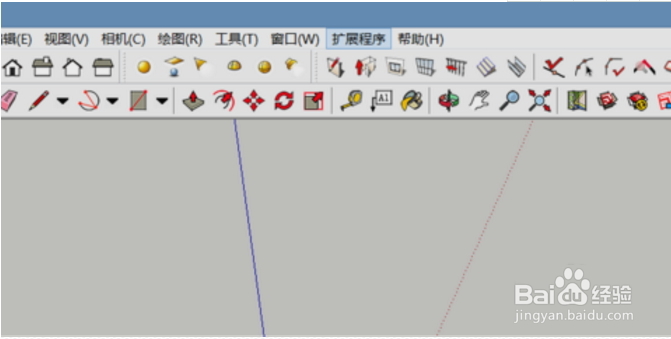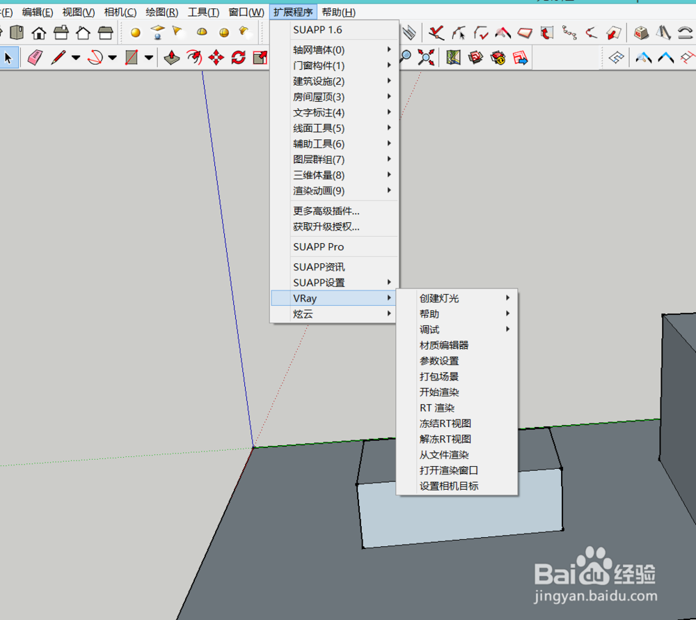 在SU2019中如何用vary渲染在安装好vary插件的电脑上打开su模型选择好角度。点击上方的扩展程序。
