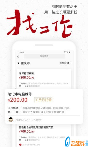 天工巧匠app一键快速匹配雇主需求,和雇主直接沟通,随时随地接活儿。