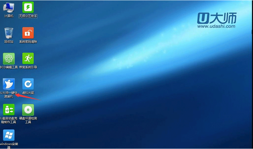 在BIOS设置好U启通启动顺序后进入U大师PE环境,双击u大师一键重装系统。