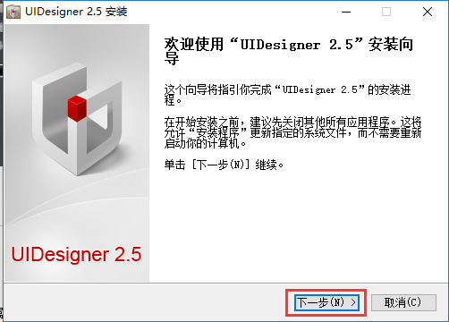 uidesigner安装步骤1、首先在本站下载uidesigner软件包,解压后运行exe文件,进入uidesigner安装向导界面,点击下一步