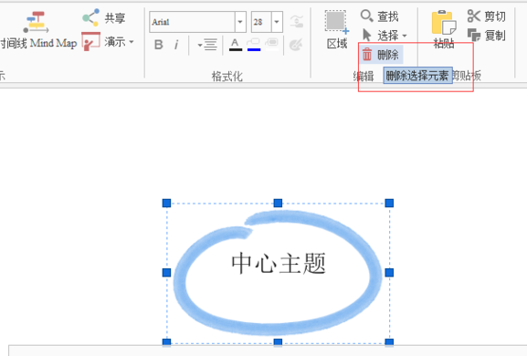 首先,我们先打开软件,创建一个中心主题。在选项中没有流程图,我们先选择思维导图,然后再删掉中心主题。