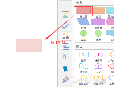 然后我们继续添加图形,除了点击图形可以添加,我们也可以直接将图形从右侧拖放到画布中,然后双击输入主题内容。这样可以直接选择摆放位置。
