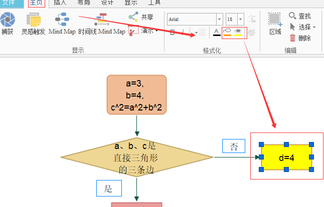图形和连线添加完以后,我们可以选中主题,点击菜单【主页】,在格式化中修改图形的颜色。