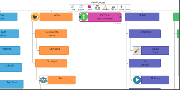 当你想要将你的想法变得可开发和可操作,只需简单地从头脑风暴视图切换到思维导图视图即可。