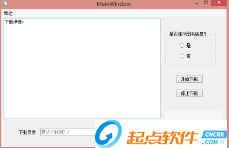 软件使用很简单,解压后点击all_ITebooks_main.exe启动软件(要解压到英文目录下),启动后如图2所示,选择好下载目录(下载目录不能是\Program Files或\Program Files (x86)等中间有空格,也不能是C盘,他没有权限。可能还有啥问题咱也不知道了。。。)、再选择是否保存图书信息,图书信息是一个关于图书的CSV表,里面有所下载书籍的名字、作者、简介和下载链接等信息。