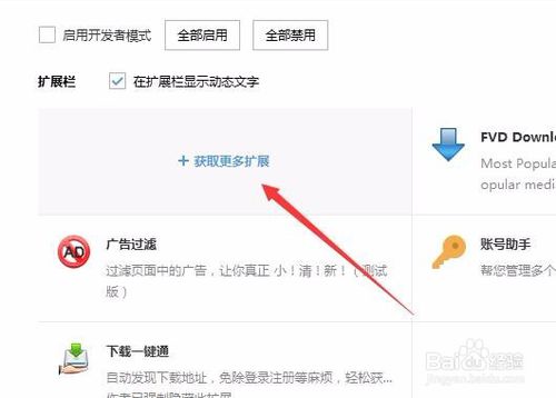 3、在右侧打开的窗口中,点击“获取更多扩展”快捷链接
