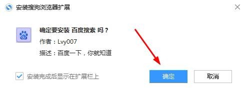 5、在新弹出的窗口中选择确定按钮,等安装完成在浏览器的上方就会显示出来