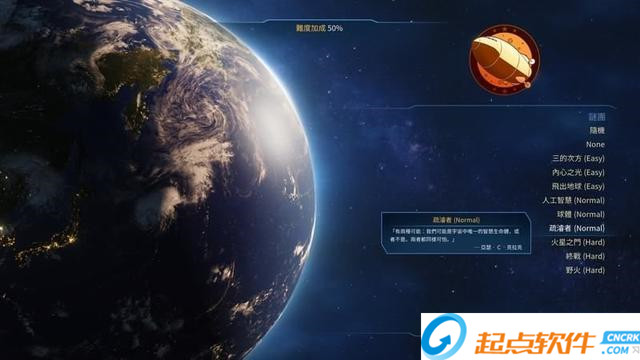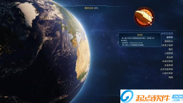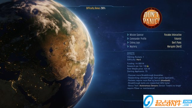 在此选项内,玩家可以为自己将要操控的火星殖民舰队选择一个赞助者,每一个赞助者提供的任务资金、固定研究点数收益都不尽相同,赞助者提供的条件越优渥,则游戏难度相对越低。