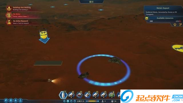 而上图所示地面红色标识则为地面下的金属资源矿藏,此种资源点金属量极高,但是开采要求的条件也较高,开采这种资源点需要建造金属开采工厂,而此设施需要使用到人力,也就是殖民者,在完成对火星表面的宜居改造前,此种金属资源点可谓是可望而不可求。