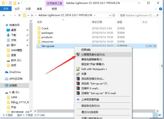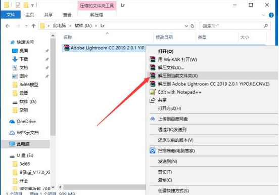 第一步:百度网盘下载Lr CC2019压缩包,下载成功后,鼠标右击解压到当前文件夹。