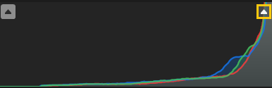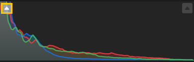 如果左上角的剪切指示器亮起(剪切指示器中的三角形为白色),则表明在照片中剪切了阴影。单击亮起的指示器以查看照片中的阴影(阴影显示为蓝色叠加蒙版)。