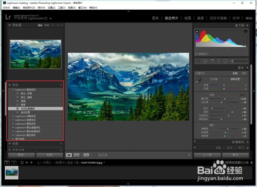 也可以通过Lightroom提供的一些预设来快速调整图片效果哦。