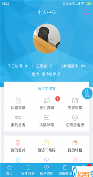 患者足不出户即可获得专业的医学科普知识和网络问诊、健康商城的便利服务