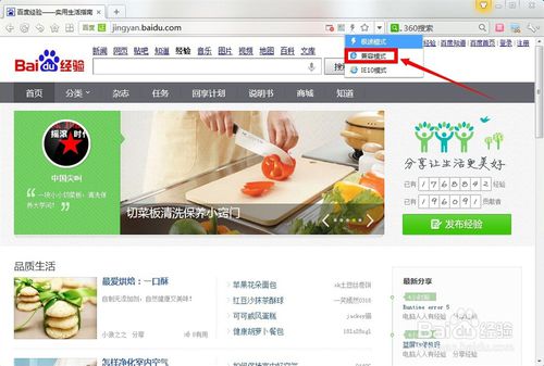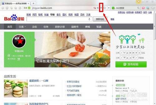 1、首先打开360浏览器,用鼠标点击下图红色箭头所指的图标。