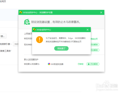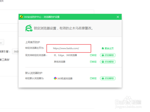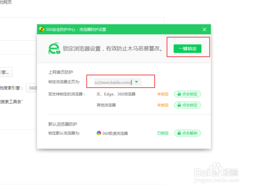 7、输入完成后,页面点击“一键锁定”,将主页锁定,出现如下的页面就代表设置成功啦,下次打开浏览器之后,页面就会默认显示你设置的主页啦。