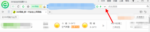 1、打开360浏览器,找到地址栏闪电标志,如下图所示!