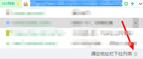 4、另外,还有一个方法可以将下拉列表中的网址一键全部删除。在下拉列表最下端有个 清空地址栏下拉列表 ,点击后面的垃圾箱图标,便可将所有的网址全部删除。
