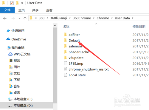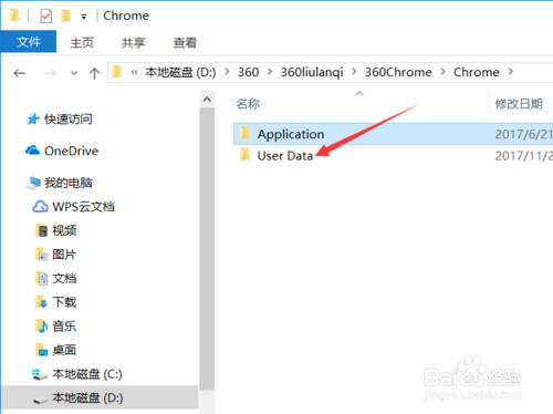 3、在Chrome目录里直接点击进入User date文件夹,如下图所示。