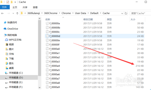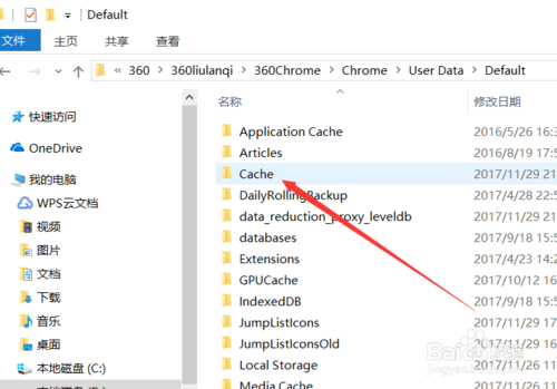 5、在Default目录可以看到有个Cache文件夹,这个就是保存浏览器缓存的目录,双击进入,如下图所示。