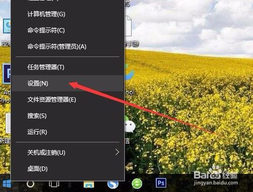 1、在Windows10系统桌面,右键点击桌面左下角的“开始”按钮,在弹出菜单中选择“设置”菜单项。