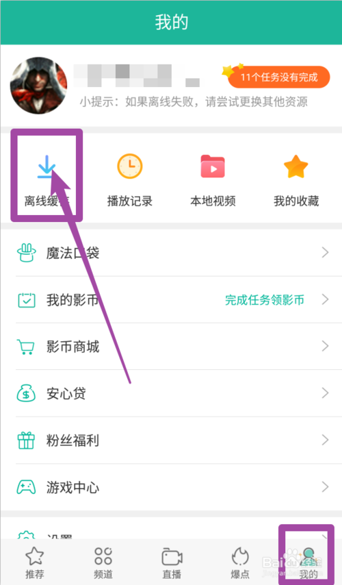 5、下载完成后退出,点击【我的】—【离线缓存】