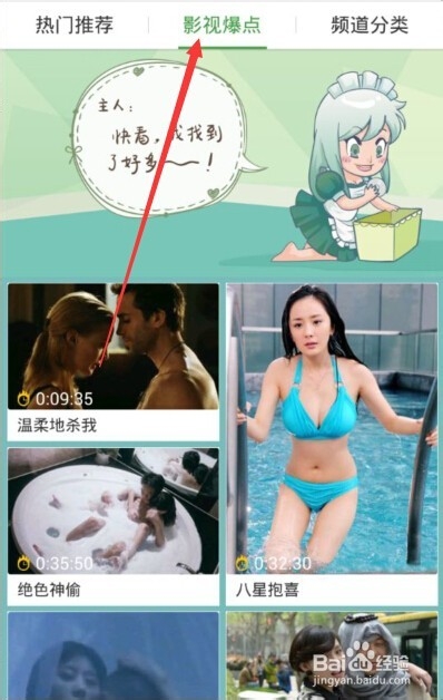 2、我们左移界面,移动到影视爆点界面,这里面的视频都是男士们的福音咯,相信大家都懂得。