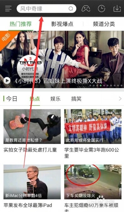 4、当然我们也可以点击页面上方的方框,输入自己想要看的电视或视频
