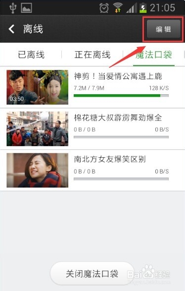 4、点击页面右上角的离线也可以查看正在离线的视频