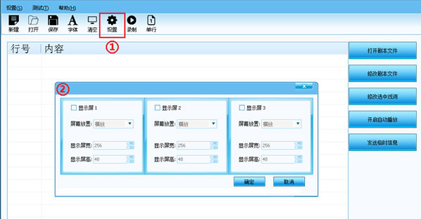 2.点击软件上方设置按钮,根据现场实际需求进行显示屏选择设置