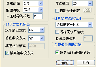 2、此对框里面的设置可以参照转化电气管线。设置完成之后,点击确定,完成转化单回路管线。