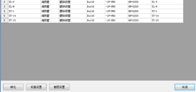 6、系统转化,显示立管编号、类型、管道材质、管径、起点标高mm)