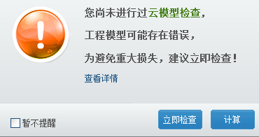 11、工程量计算。您尚未进行过云模型检查,工程模型可能存在错误,为避免重大损失,建议立即检查!
