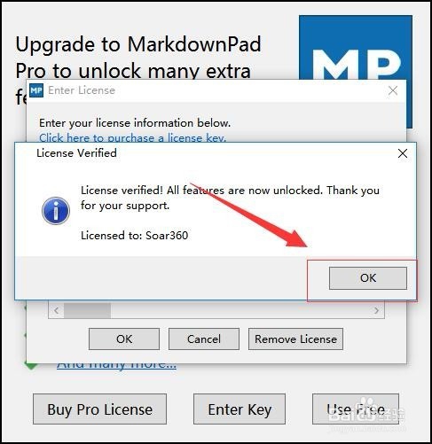 接着,在弹出的对话框中输入,我们事先准备好的注册码,完成后点击“OK”。如图: