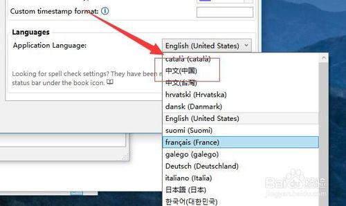 接着,在“Applicationg Language”后面选择中,选择“简体中文”。如图: