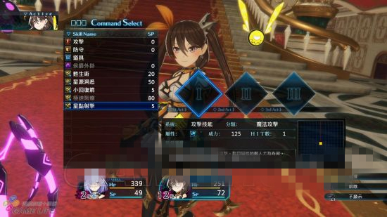 角色在战斗中的自身回合内可以选择三种行动并且排序,在按下确认之后就会自动按照顺序施放出来,如果是直接利用预设的组合的话,则会使出三次的普通攻击加上一次额外的击飞攻击。