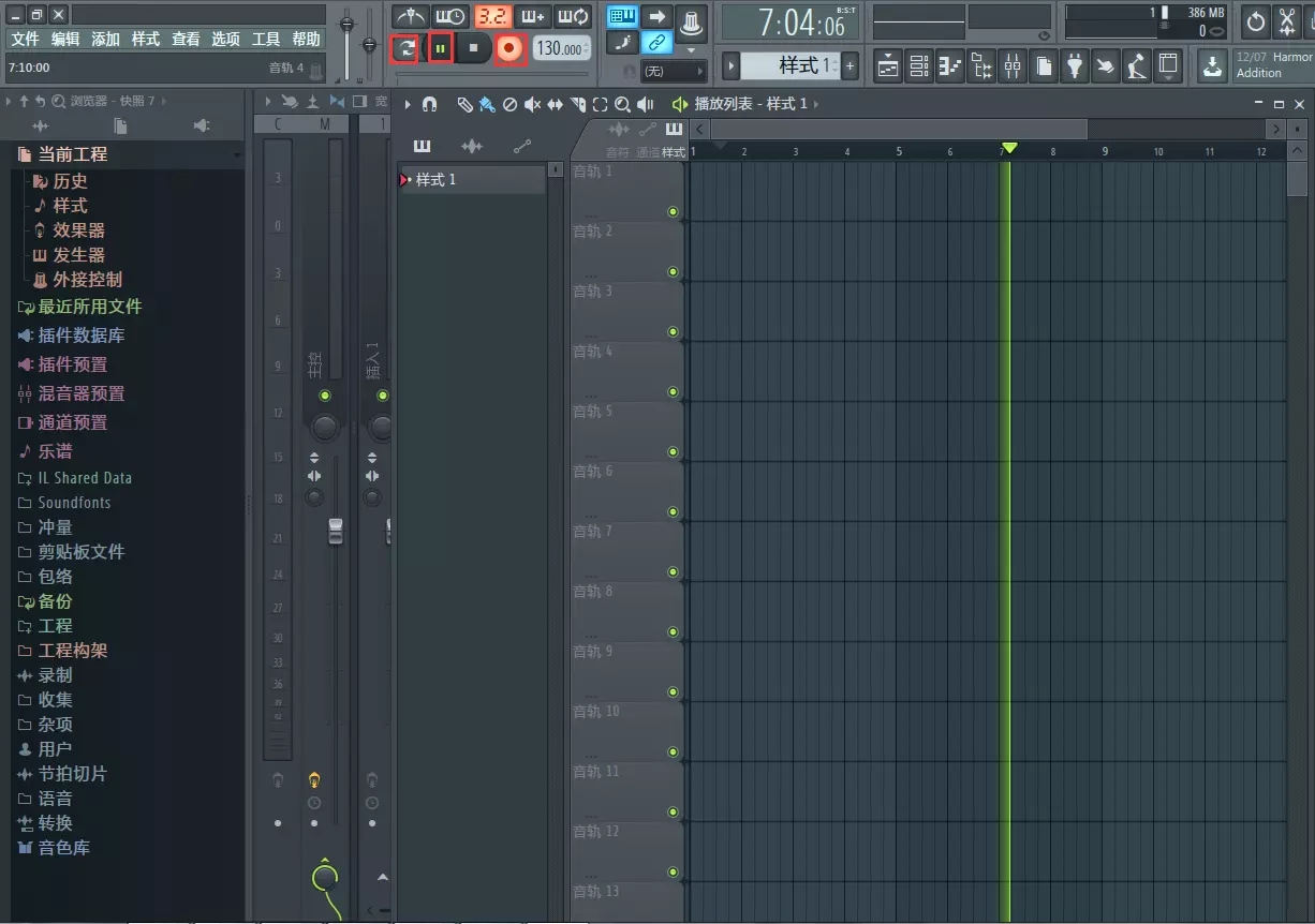 FL Studio独特的模式系统可在播放列表中的任意位置同时进行多个时间签名。