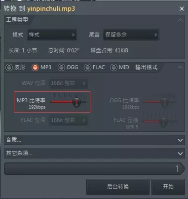 弹出设置框,调节 MP3 比特率,也是左右滑动,点击开始即可。