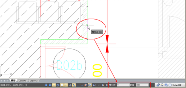 6、对象捕捉改进:当打开等分捕捉和距端点捕捉时,浩辰CAD2018状态栏会显示等分数和距离输入框,用户无需打开捕捉对话框就可随时调整等分数和距端点的距离,操作更方便。
