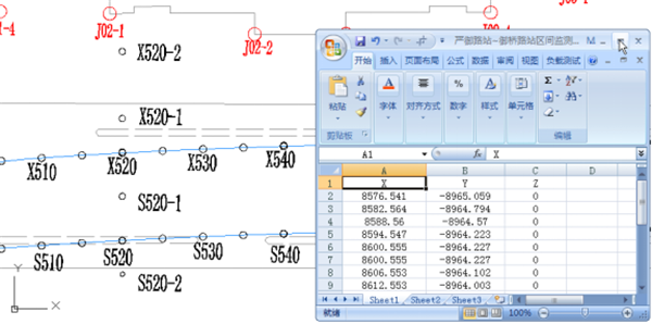 1、将坐标及坐标点号录入到excel表格中,如图所示。