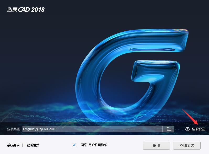 1、执行浩辰CAD安装程序。安装文件解压后会正式开始安装,会弹出安装向导界面指导您一步步完成操作,如下图所示。
