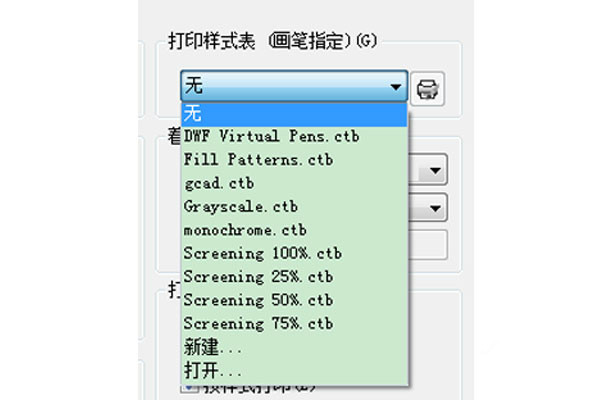 1、浩辰CAD支持pcp文件、stb和ctb文件,这里不仅能选择已经设置好的打印样式文件,也可以由用户自定义进行相关设置。